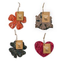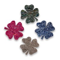 Recycled vilt figuren set/4 - Gebruik de multifunctionele figuren van 100% gerecycled vilt als onderzetters, (inpak)decoratie, boekenlegger of rijg er een slinger van. 100% made in Holland. Leverbaar in bloem-, hart- en klavertje vier vorm.