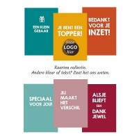 1. Eigen logo en/of tekst op een kaart uit onze eigen collectie.